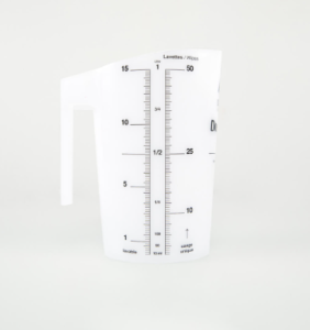 Pichet gradué (1 litre) destiné à faciliter l’imprégnation des bandeaux et lavettes.